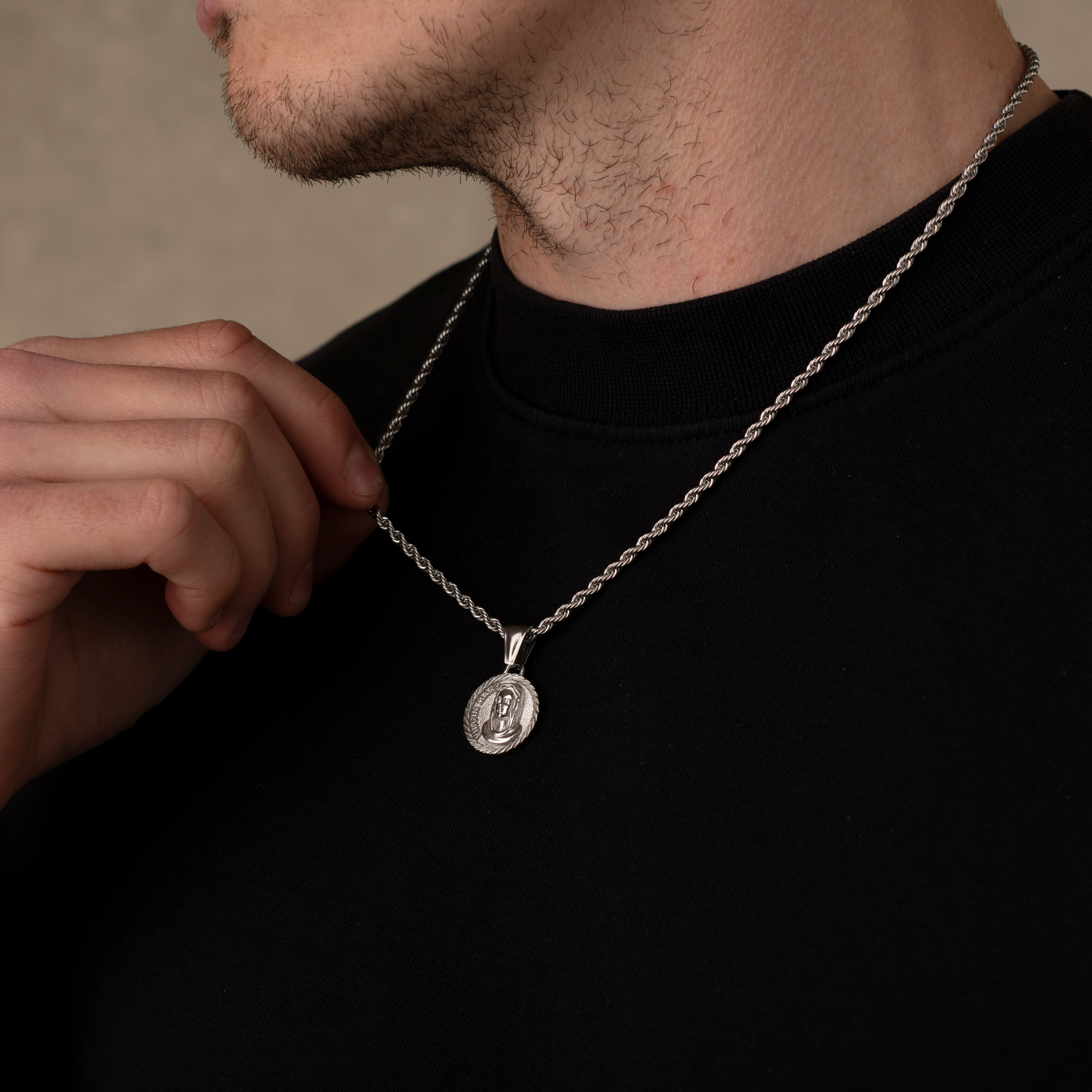 Introducing our Silver St Mary Necklace Pendant. This exquisite piece embodies a timeless design that commemorates cherished moments. Crafted from 316L Stainless Steel our new St. Mary pendant is a testament to quality and style.