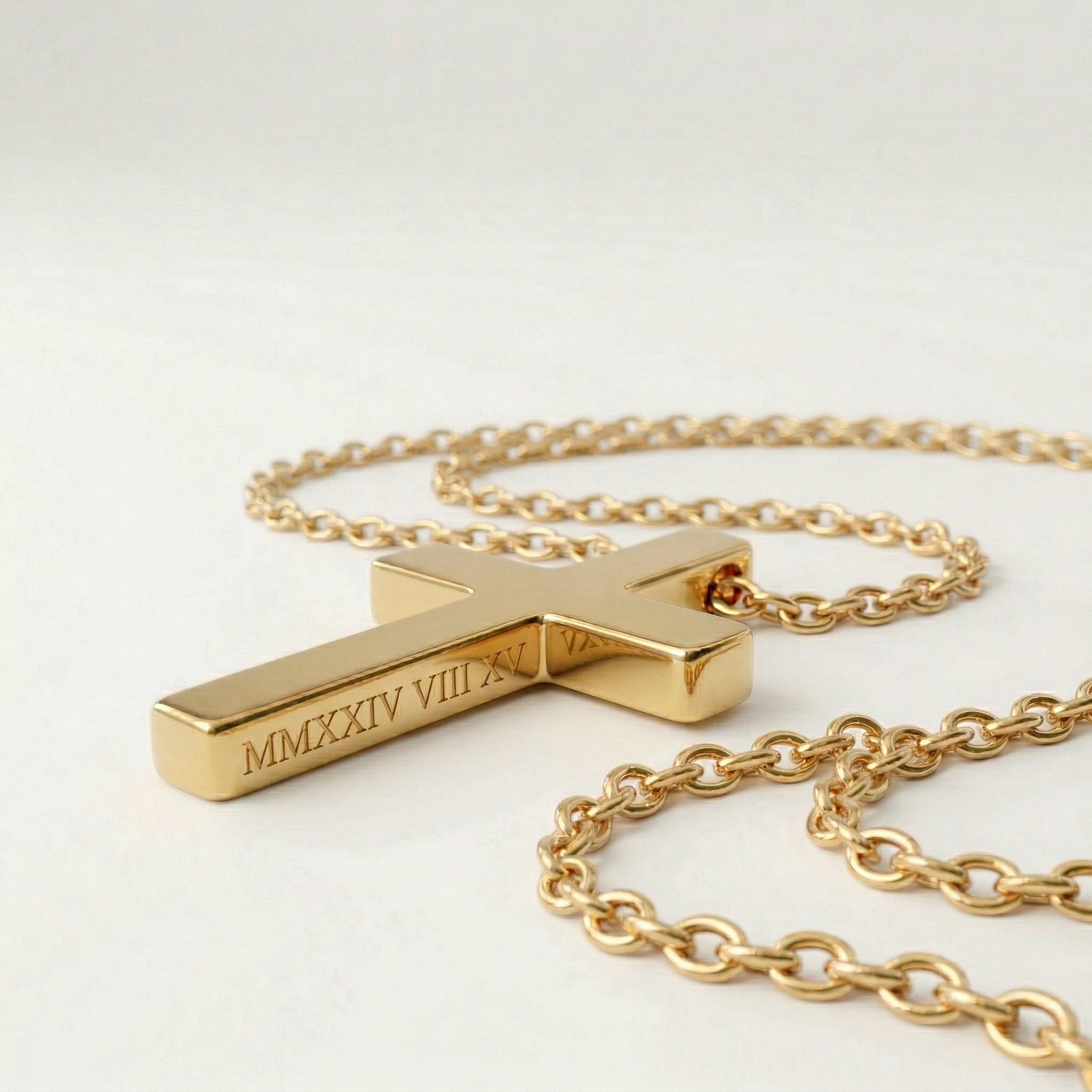 Whether worn as a symbol of faith, strength, or personal meaning, this engraved gold cross necklace is a refined religious jewelry piece designed to carry style and significance every day.