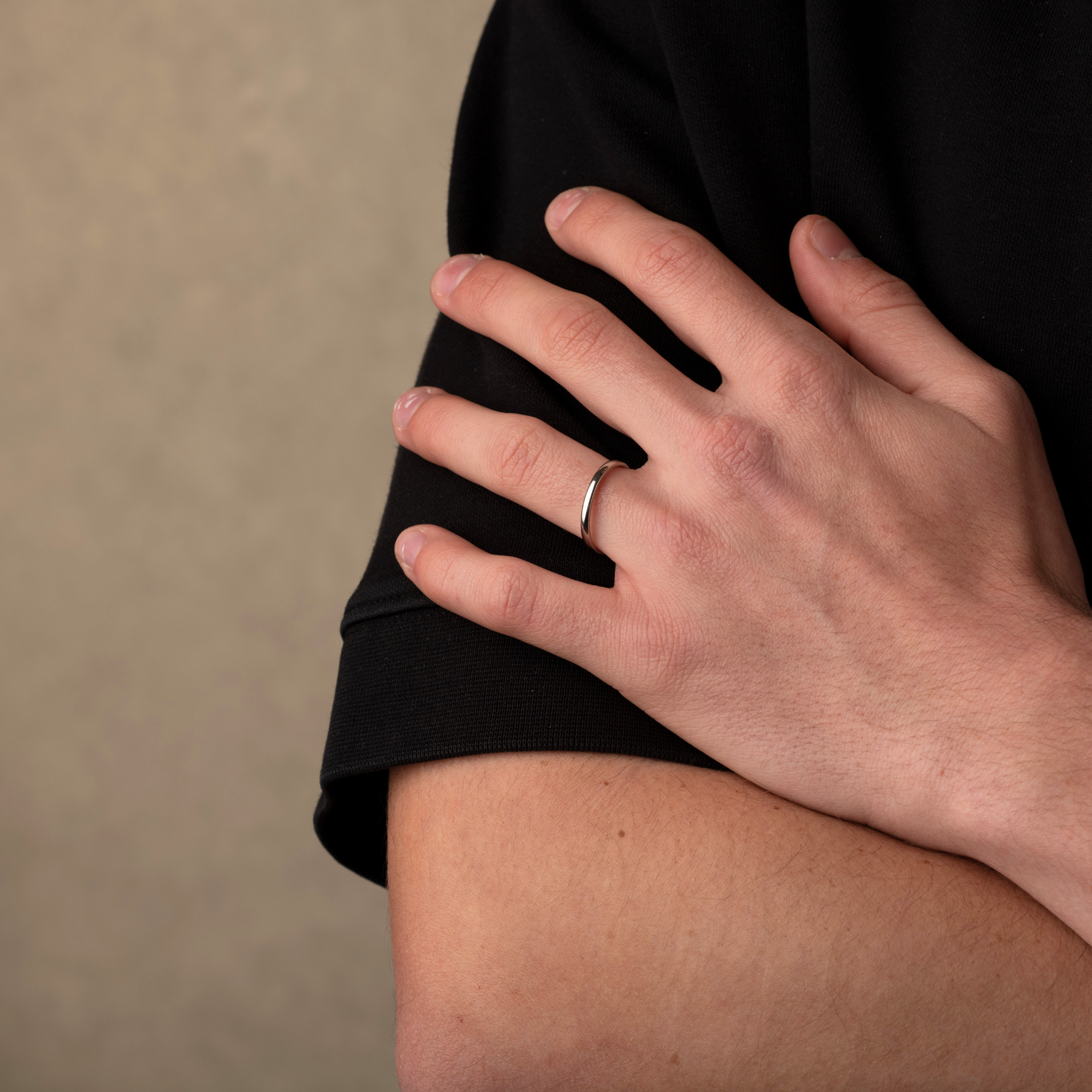 Introducing our Silver Simple band ring, a subtle yet stylish accessory for the modern gentleman. Whether worn as a standalone piece for a minimalist look or stacked with other rings for added dimension, it's a ring that effortlessly complements any style.